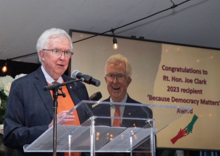 “Canada shares the challenges of democracy with the wider world. But our distinction has been our instinct and capacity to address and lead those inherent democratic challenges. That instinct remains a critical contemporary feature of Canada and a role for us in the days to come.” – The Right Honourable Joe Clark, 2023 Democracy Awards