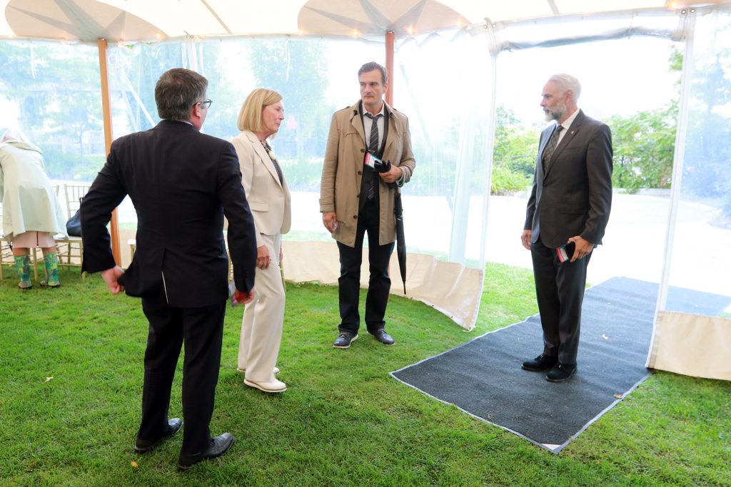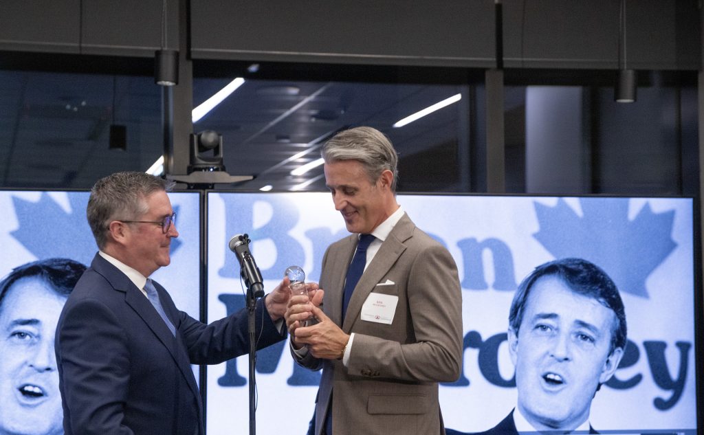 “The distance between the opposition benches and government benches is 13 feet which is supposed to represent the length of two swords. There’s a violent connotation to that but I chose to look at it differently. With all weapons, at some point you put your weapons down and [Mulroney] remembered that.” – Ben Mulroney, 2024 Democracy Awards